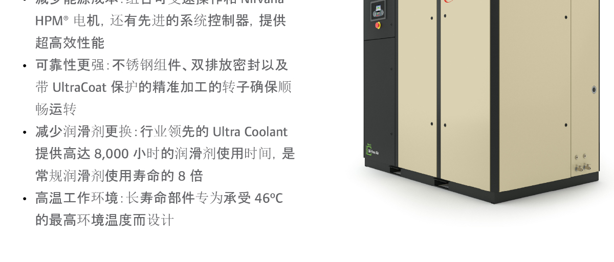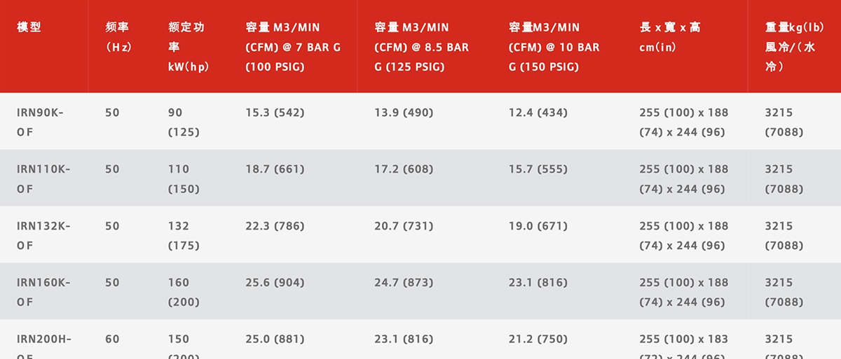 產(chǎn)品名稱:Nirvana系列90-160 kW可變速無油回轉式螺桿空壓機